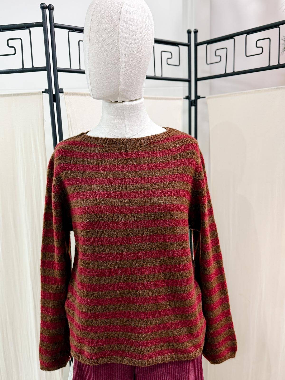 Jersey de mujer en rayas granate y marrón.